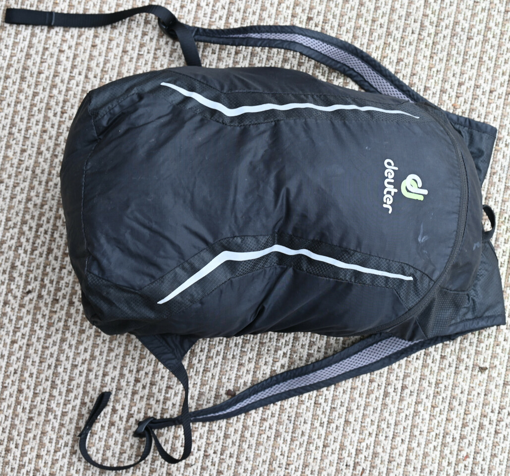 Das Material ist bei dem ultraleicht Rucksack ziemlich duenn - wenn ich nicht Platz und Gewicht optimieren will, werde ich weiterhin einen anderen Faltrucksack nutzen. Davon haben sich ueber die Jahre ein paar verschiedene Modelle angesammelt :